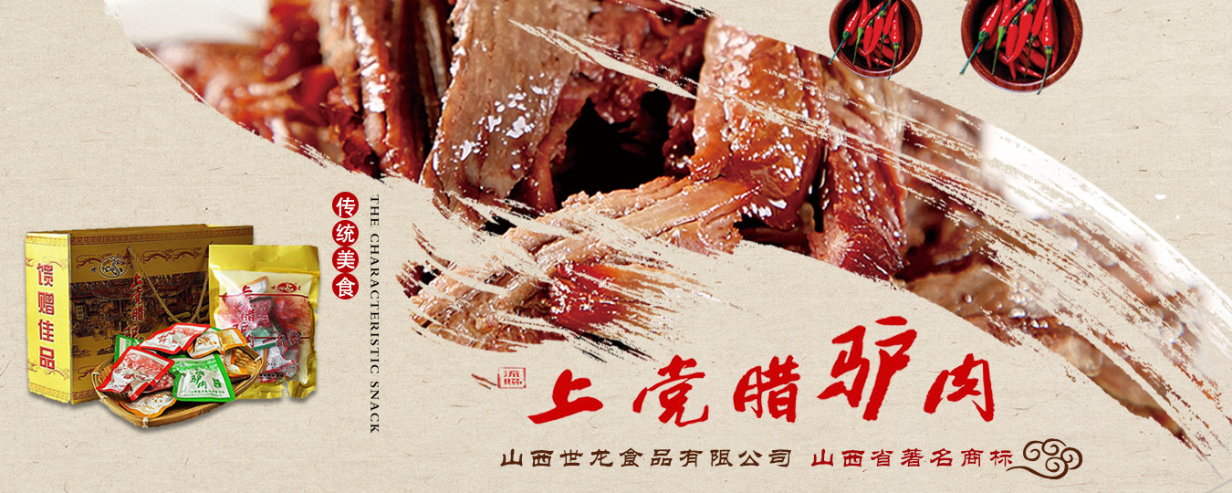 山西世龍食品有限公司是以“世龍”牌上黨臘驢肉系列產(chǎn)品為主導,集科研開發(fā)、良種繁育、基地建設、生產(chǎn)加工、市場營銷于一體的農(nóng)業(yè)產(chǎn)業(yè)化國家重點龍頭企業(yè)、全國農(nóng)業(yè)標準化示范區(qū)、全國食品行業(yè)優(yōu)秀龍頭企業(yè)、山西省農(nóng)業(yè)產(chǎn)業(yè)化重點龍頭企業(yè)、山西省農(nóng)產(chǎn)品加工“513”工程單位、山西省帶動貧困地區(qū)基地建設重點龍頭企業(yè)、山西省民營畜牧業(yè)示范基地、山西省質量信譽AAA級單位、山西省重合同守信用單位、山西省消費者協(xié)會誠信單位、山西省民營科技企業(yè)。